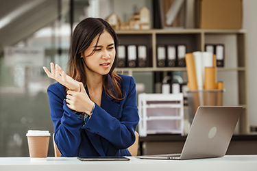Repetitive stress injuries are common in office-related environments, typically due to improper posture throughout the workday. If you slouch at your computer for prolonged periods of time or tilt your head down to look at a keyboard or important files, you may experience back, neck, or shoulder pain. With time, your spine may even become affected — our spines all have a natural “S” curve but with continued poor posture in the workplace, it can turn into more of a “C” curve.